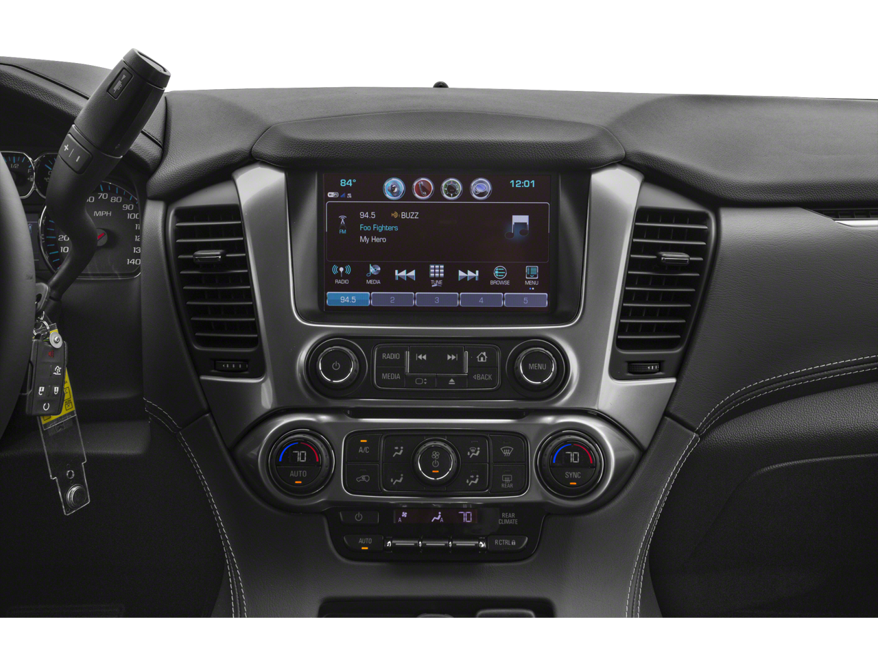 - Audio system, Chevrolet MyLink Radio with 8" diagonal color touch-screen AM/FM stereo with seek-and-scan and digital clock, includes Bluetooth® streaming audio for music and select phones; voice-activated technology for radio and phone; and Shop with the ability to browse, select and install apps to your vehicle. You can customize your content with audio, weather and more; featuring Apple CarPlay and Android Auto capability for compatible phone; 5 USB ports and 1 auxiliary jack